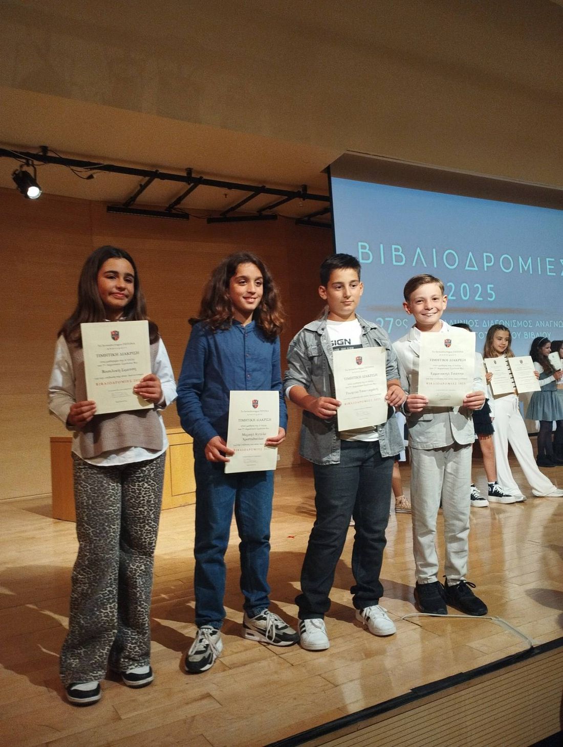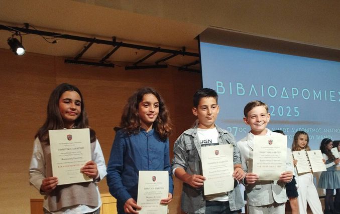 Μέσα σε κλίμα χαρά και συγκίνησης, το απόγευμα της Παρασκευής, στο Μουσείο Μπενάκη στην Αθήνα, βραβεύτηκαν οι μαθητές που διακρίθηκαν στον 27ο πανελλήνιο διαγωνισμό ανάγνωσης παιδικού λογοτεχνικού βιβλίου "Βιβλιοδρομίες 2025" που διοργάνωσαν τα εκπαιδευτήρια Γείτονα.