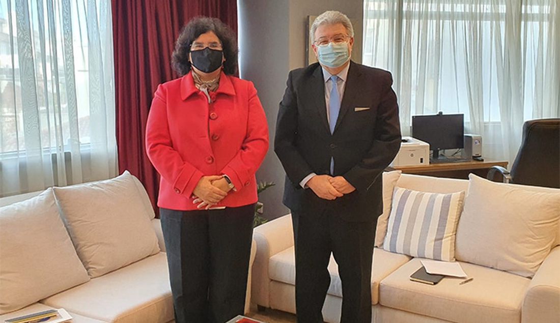 Τον Γενικό Γραμματέα Δημόσιας Διπλωματίας και Απόδημου Ελληνισμού, κ. Ιωάννη Χρυσουλάκη, επισκέφθηκε σήμερα στο Υπουργείο Εξωτερικών, κατόπιν αιτήματός της, η πρέσβης της Πορτογαλίας στη χώρα μας, κα Helena Paiva. Αντικείμενο συζήτησης οι δυνατότητες συνεργασίας της Ελλάδας με την Πορτογαλική Προεδρία του Συμβουλίου της Ε.Ε., οι προοπτικές ανάπτυξης των διμερών πολιτιστικών σχέσεων και η προώθηση δράσεων Δημόσιας Διπλωματίας και συναφών συνεργειών.