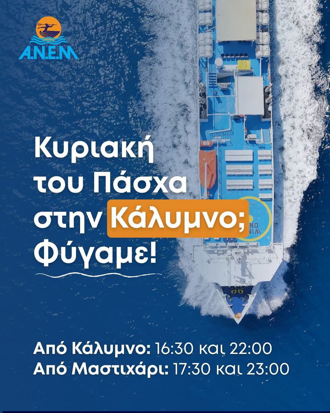 ΑΝΕΜ: Εξτρα δρομολόγια για Κάλυμνο την Κυριακή του Πάσχα