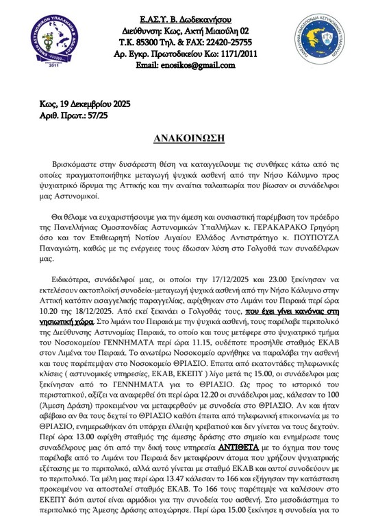 Δώρα και χαμόγελα από τον Άγιο Βασίλη στα παιδιά των στελεχών της ΕΛ.ΑΣ. στην Κω