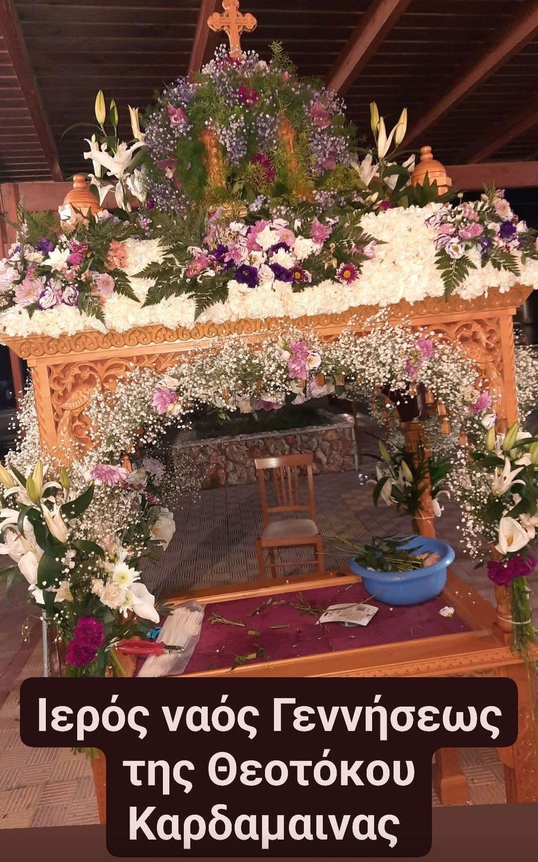 Όπως κάθε χρόνο, χιλιάδες λουλούδια προσφέρθηκαν για τον στολισμό, κυρίως από τους ενορίτες, αλλά και από οικογένειες που θέλησαν να συμβάλουν σε αυτή τη σημαντική στιγμή της Ορθόδοξης παράδοσης.