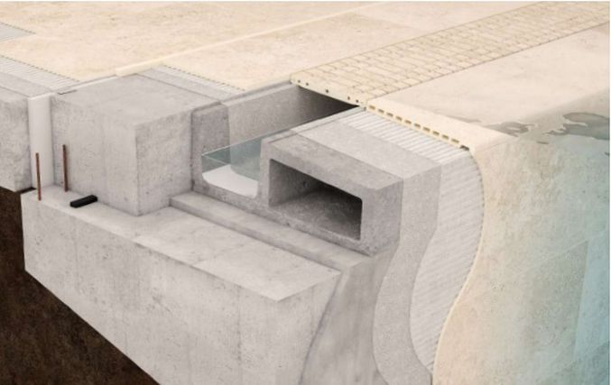 Τεχνική τομή πισίνας – δείχνει κανάλι υπερχείλισης.