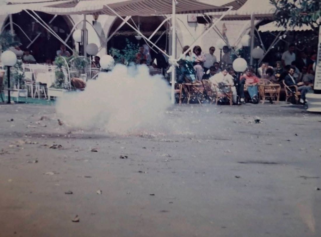 Φαίνομαι να τοποθετώ στην μέση της Πλατείας Ελευθερίας στην Κω, αυτοσχέδιο πυροτέχνημα (βαρελότο) καρέ-καρέ και να το παρακολουθώ με τον αδελφό μου Αντώνη να εκρύγνειται. Εκείνη την εποχή το τοπικό έθιμο ήταν να μαζευόμαστε το μεσημέρι της Κυριακής της Ανάστασης και να κάνουμε διαγωνισμό βαρελότων, ποιό θα κάνει την μεγαλύτερη έκρηξη!!