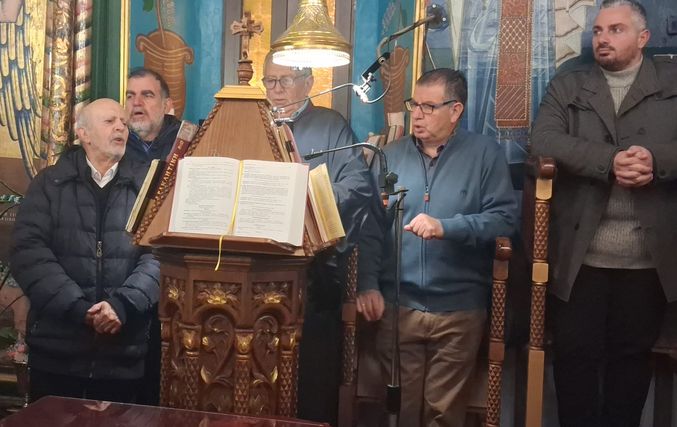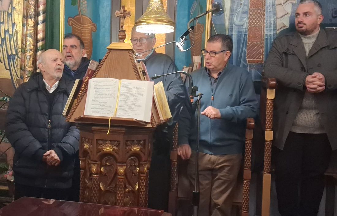 Έψαλλαν ο Πρωτοψάλτης του ΙΝ Γιάννης Κουτσουράης, με τον Γιώργο Σανιδά, τις αδελφές Ειρήνη και Μαρία Χατζημιχάλη, τον Σταμάτη Ζαμάγια και άλλους βοηθούς Ιεροψάλτες.